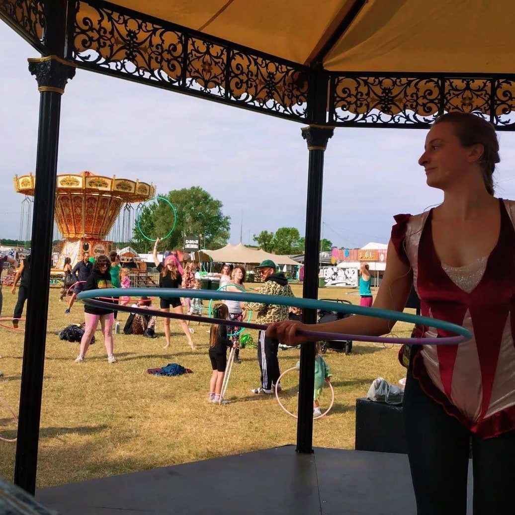 I’ve taught hula hooping classes all over the world, including the UK, Portugal, Mexico and Thailand, including schools and festivals like Nozstock and the iconic Shambhala band stand.